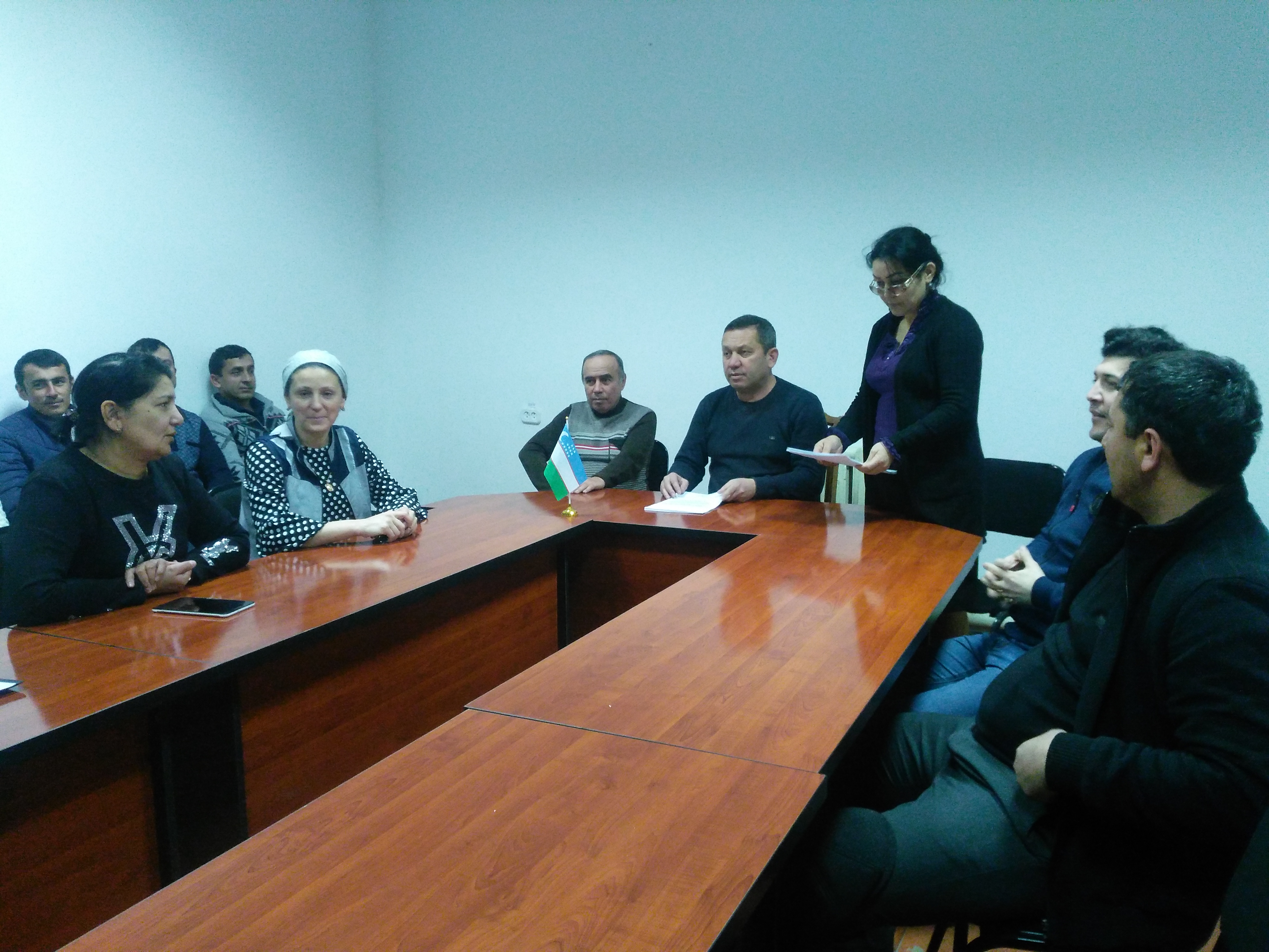 Жамият маъмурияти ва касаба уюшма қўмитаси ўртасида 2016-2018 йилларга мўлжалланган жамоа шартномасини 2018 йилда бажарилишини текшириб борувчи комиссия далолатномаси комиссия аъзоси А.Салимов томонидан йиғилиш қатнашчиларига ўқиб эшиттирилди.