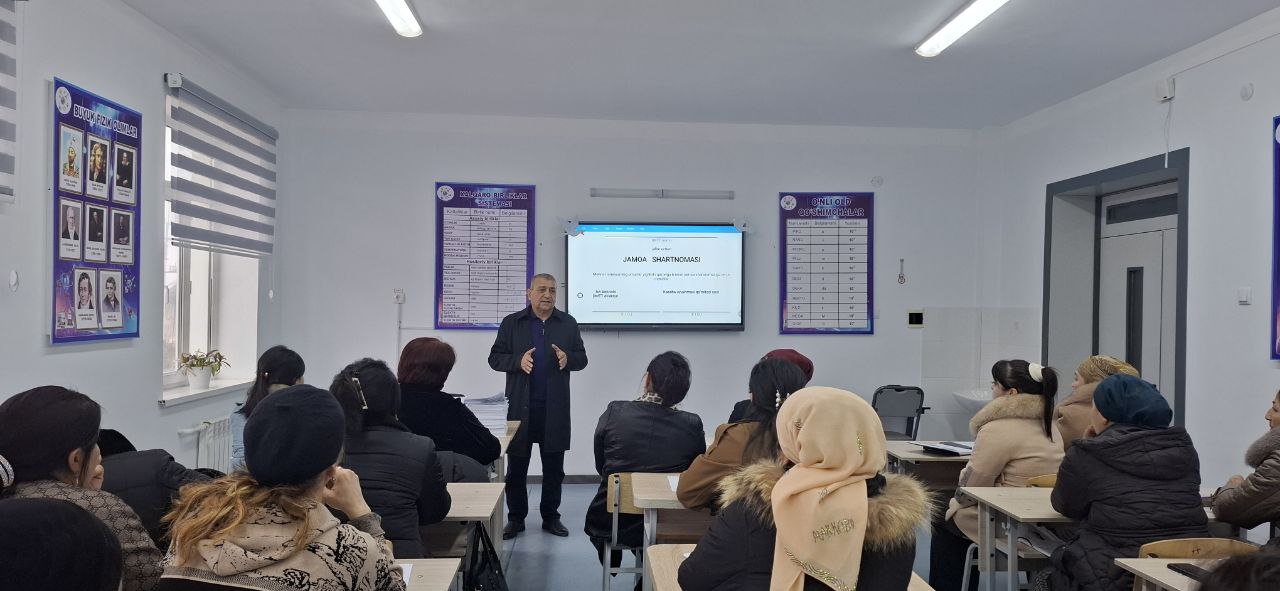 Ta’lim sohasi xodimlarining huquqiy himoyasini ta’minlovchi asosiy hujjat jamoa shartnomalarini yangi davr uchun sifatli tayyorlash maqsadida O‘zbekiston ta’lim va fan xodimlari kasaba uyushmasi Gʻijduvon tuman bo‘linmasi kengashi tashabbusi bilan boshlang‘ich tashkilot raislari ishtirokida o‘quv-uslubiy mashg‘ulot tashkil etildi.